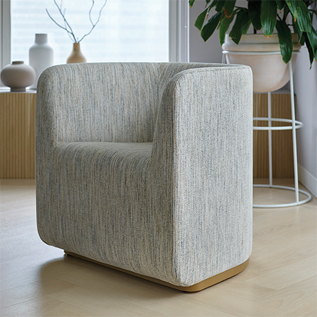 Designed by Thijs Smeets, industrial product designer, Elara lounge seat by Carolina, an OFS company, includes a curved, wide-framed design. Elara is available in a variety of base options including adjustable glides or a metal plinth base, which comes in 18 powder-coat colors.