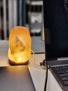 My mini-Himalayan salt rock lamp is always on. Anything that brings me health benefits while working on my computer all day is a bonus.